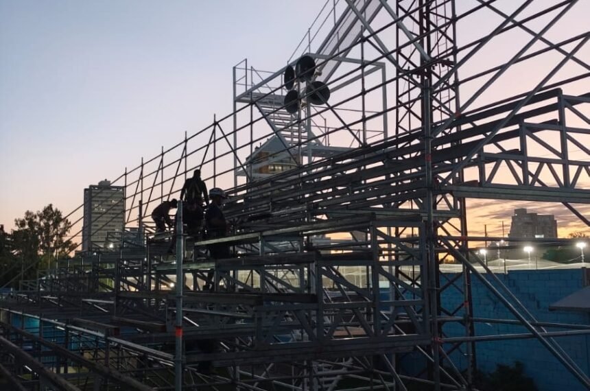 Estudiantes de Río Cuarto trabaja en la instalación de tribunas tubulares para ampliar la capacidad del estadio, ante la gran expectativa generada por el partido del domingo, frente a River.La ampliación permitirá un marco de público histórico, dado ...