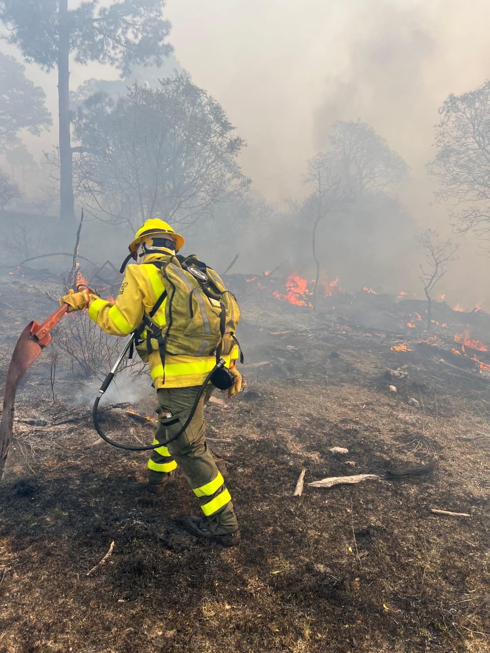 11 dotaciones junto a personal de ETAC trabajan entre San Clemente y Potrero de Garay, al oeste del dique Los Molinos...