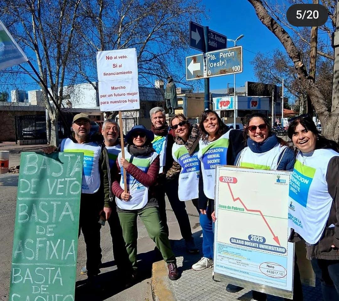 docentes universitarios salieron a la calle, una vez más para reclamar ante las políticas del gobierno nacional. Exhibieron pancartas y entregaron volantes a conductores...