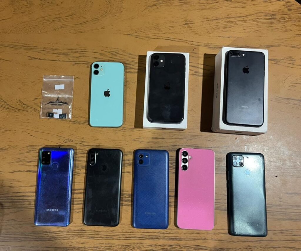 9 teléfonos celulares.