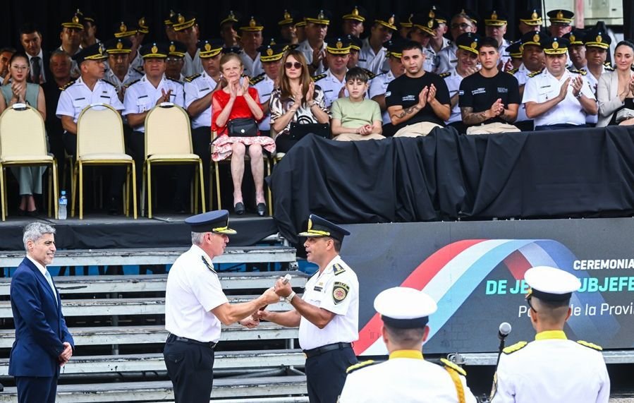 Durante la ceremonia, el Crio. Gral. Lic. Marcelo Marín fue designado Jefe de la Policía; el Crio. Gral. Ab. Lic. Alberto Bietti asumió como Subjefe Capital; el Crio. Gral. Lic. Iván Rey como Subjefe Interior; y el Crio. Gral. Lic. Federico Cisnero continúa en funciones como Subjefe Administrativo de la fuerza.