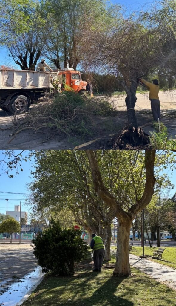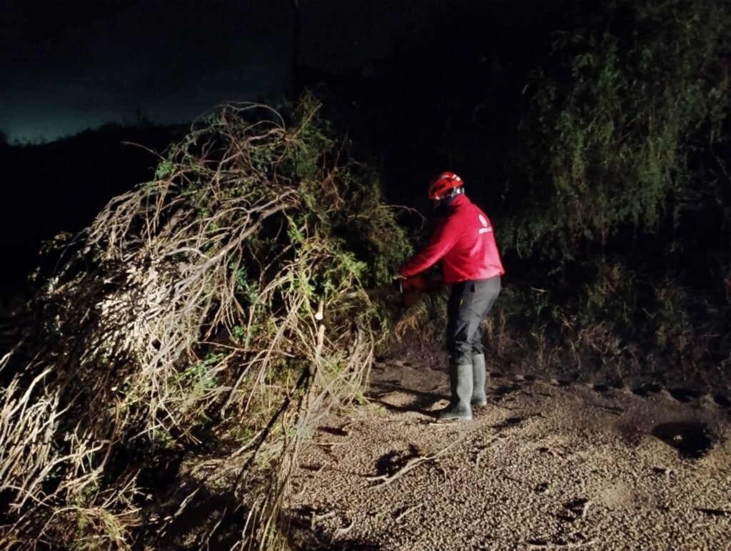 En Las Higueras, un árbol caído sobre la Ruta Nacional 158 km 274 bloqueó la calzada, requiriendo la intervención de personal de GLP y Bomberos Voluntarios para liberar el camino.