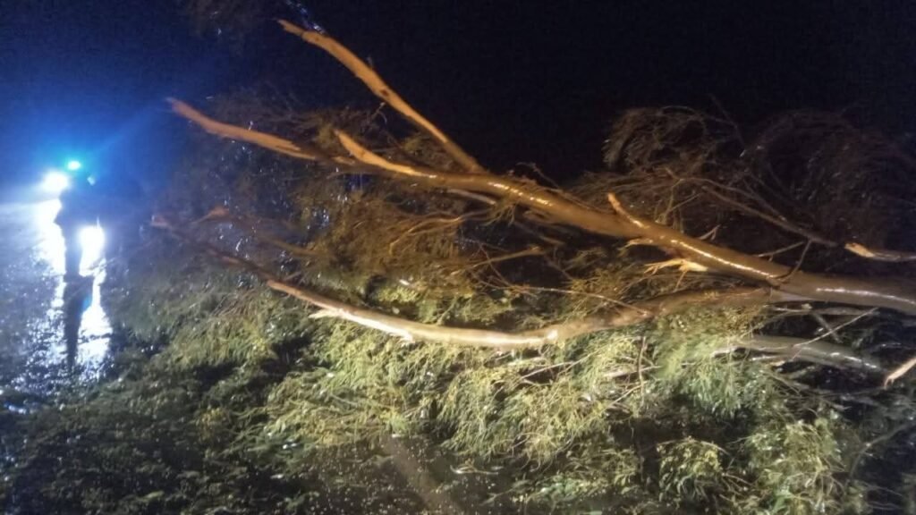 Se registraron la caída de múltiples árboles y postes de tendido eléctrico, interrumpiendo el servicio y la circulación.