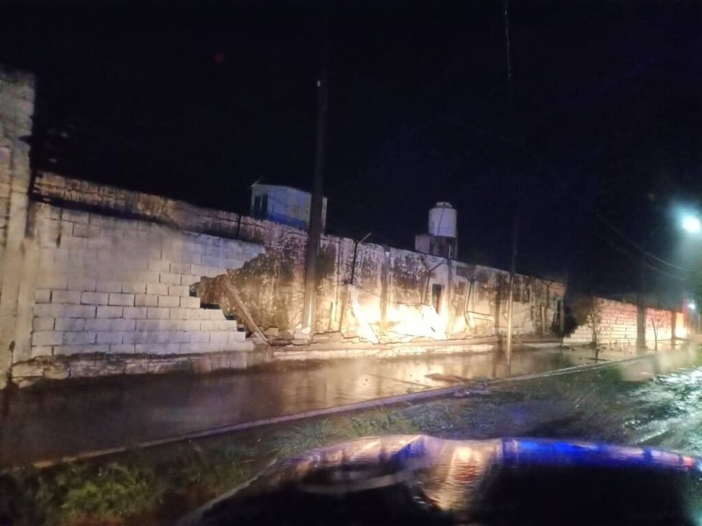 En Holmberg, las ráfagas de viento provocaron el colapso de un paredón en el Club Atlético Granada.