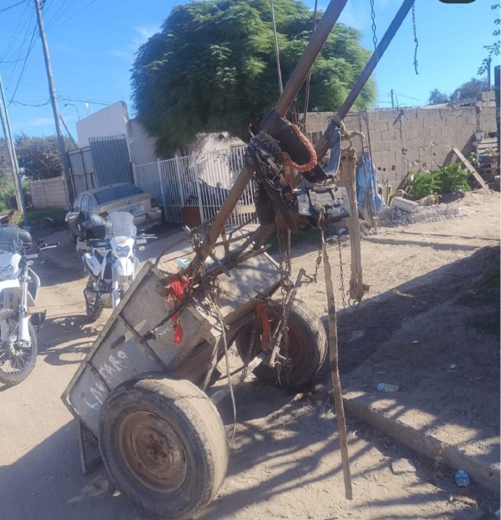 La trayectoria finalizó en barrio Las Delicias, donde el vehículo colisionó contra un carro de tracción a sangre. En el lugar, personal médico brindó asistencia a los ocupantes de ambos vehículos, mientras que también se garantizó la atención veterinaria del equino involucrado. No se registraron lesiones de consideración, reportándose daños materiales en ambos rodados.