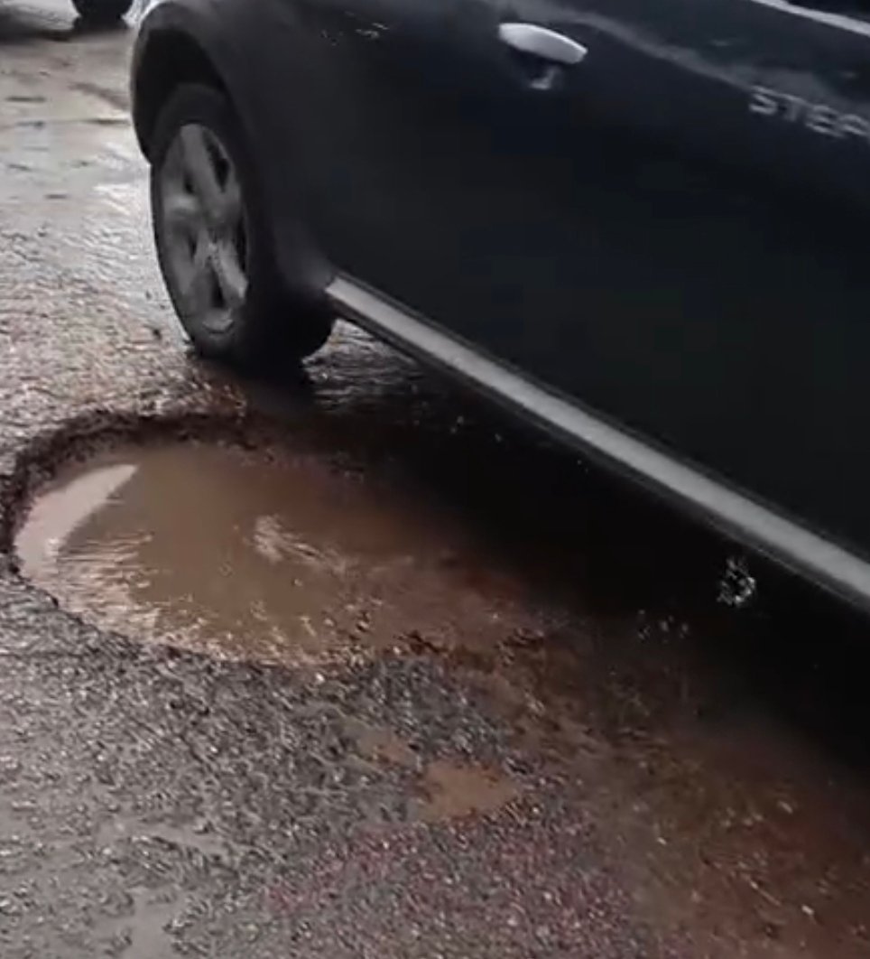 Un bache de gran tamaño genera complicaciones en el tránsito y pone en riesgo a conductores y motociclistas. En días de lluvia, queda cubierto de agua y se vuelve prácticamente invisible.