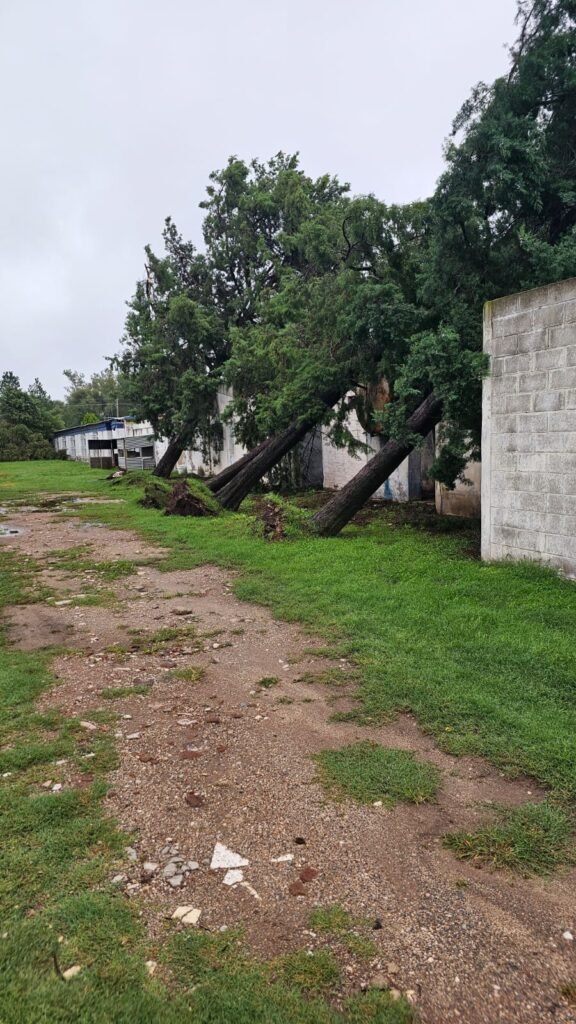 • Daños: voladura de techo, árboles y postes caídos.
