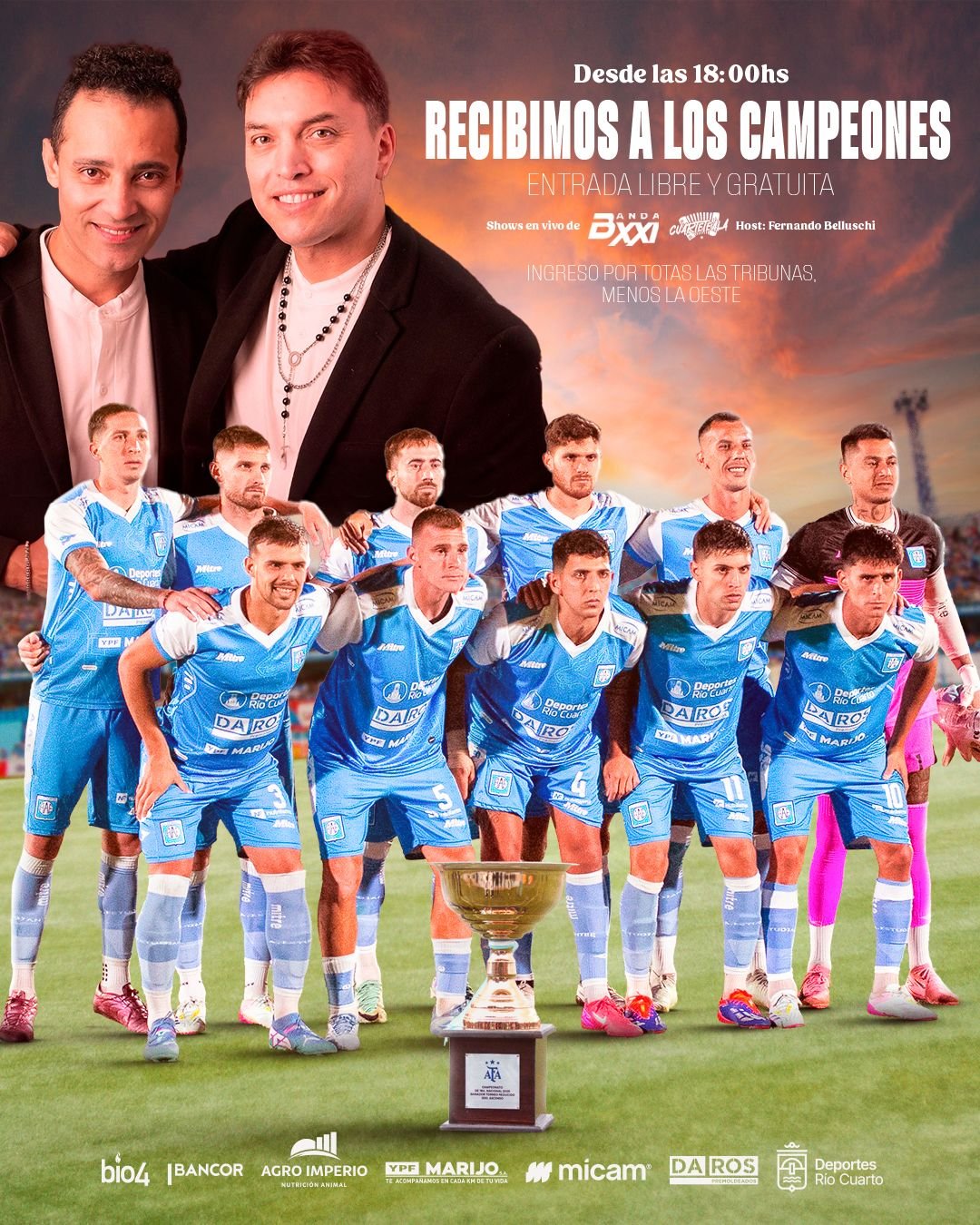 Según se informó se hará un gran recibimiento en el Estadio Ciudad de Río Cuarto esta tarde aproximadamente a las 18 horas, con show en vivo, pantalla gigante y notas especiales.Los vecinos de la ciud...