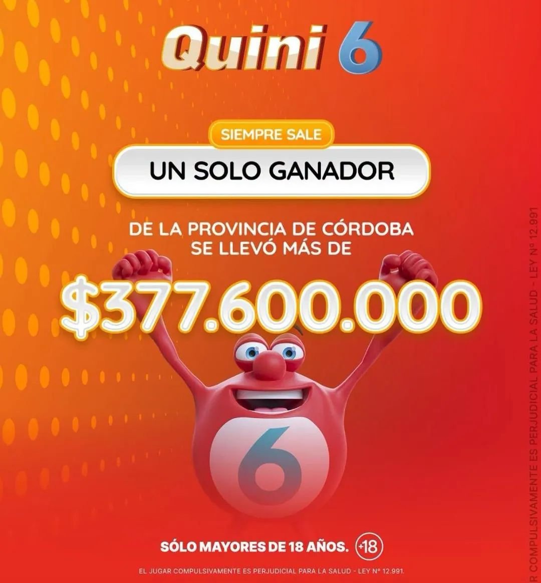 Un apostador de Río Cuarto se convirtió en el gran ganador del Quini 6 tras acertar los seis números de la modalidad Siempre Sale.El premio supera los 377 millones de pesos, correspondiente al sorteo ...