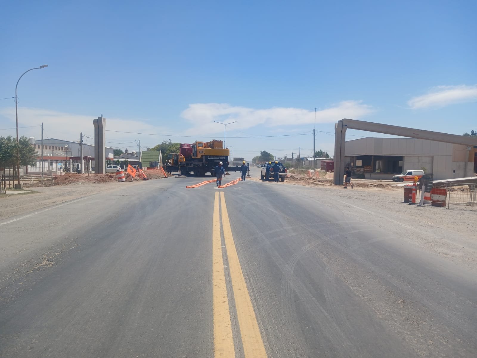 La circulación estuvo redireccionada, este miércoles, para poder realizar el montaje de la pasarela sobre ruta 8, a la altura de la calle principal de Santa Catalina. Se realizó un bypass por calles d...